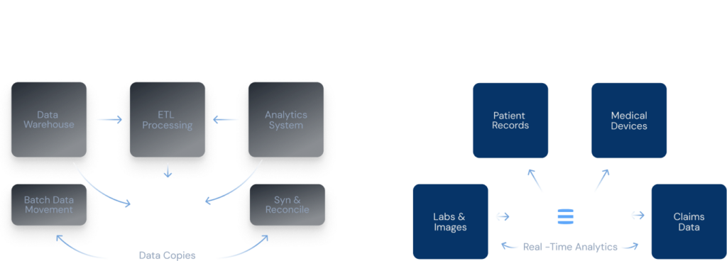 For healthcare organizations, this enables real-time analysis across clinical records, documents, imaging metadata, and genomic datasets without data movement.